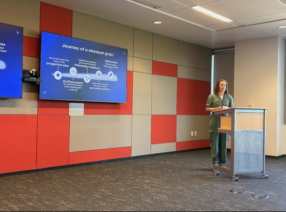 Undergraduate student Els Shepard presented her work on 3D core collapse supernova models and a comparison to stardust isotopic compositions at the NASA Space Grant symposium.